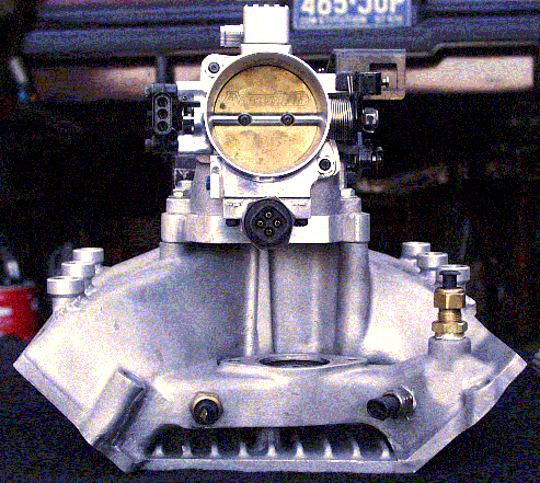 - Notice the aluminum vacuum block on top of the throttle body