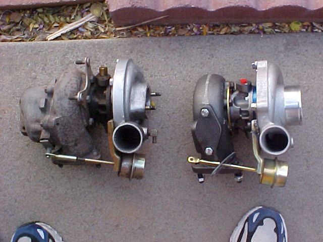 - This is the compressor side of the 1986-87 stock turbo (right) and the CPT-62 turbo (left)